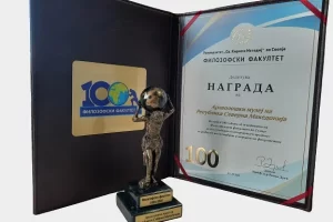 Ни претставува особена чест и задоволство што Археолошкиот музеј е добитник на награда за долгогодишен и исклучителен придонес за развојот на наставата и науката на факултетот, која и’ беше врачена на в.д директорката, д-р Славица Бабамова.