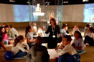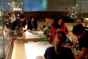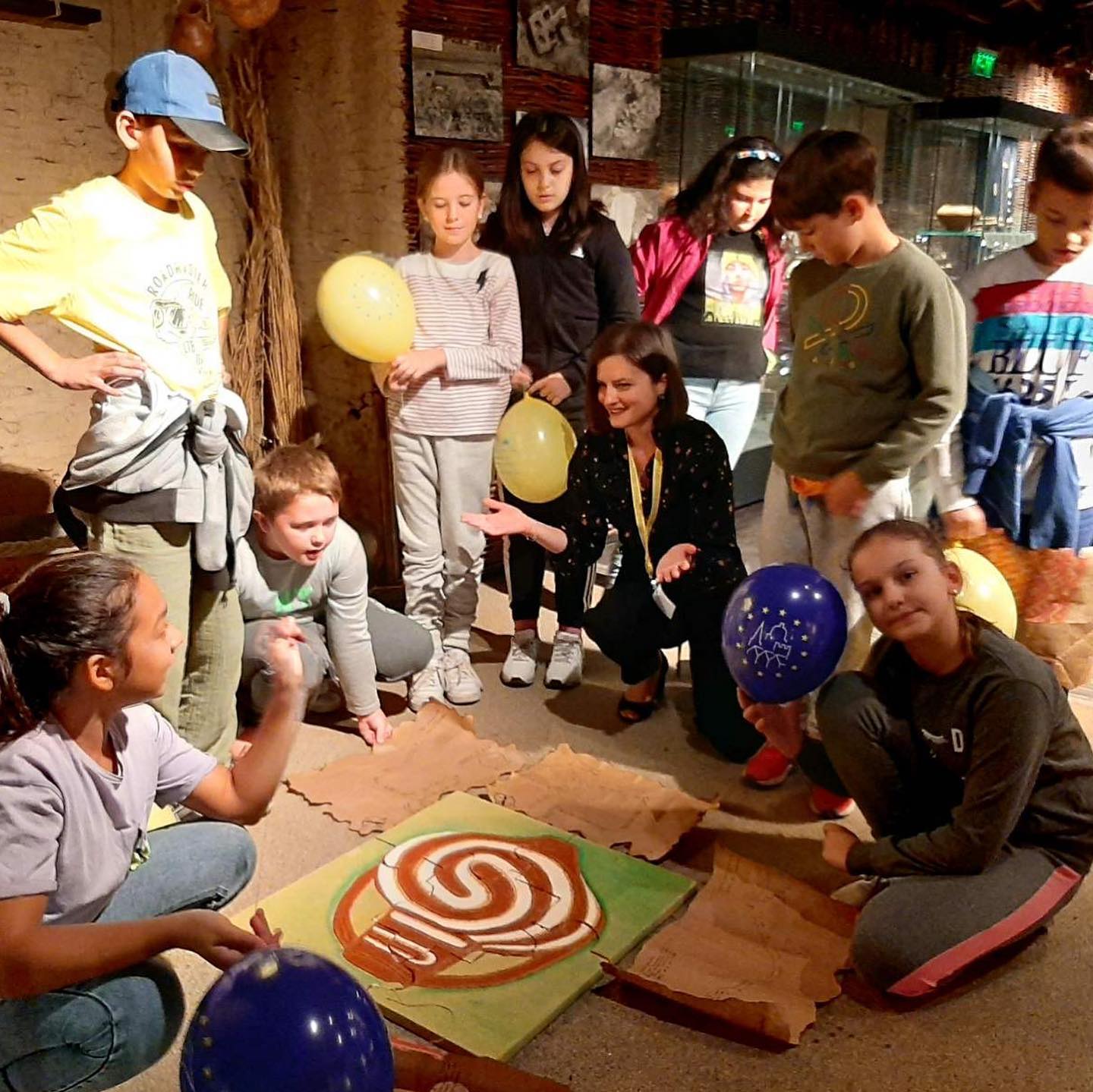 Преку игра и потрага по деловите со кои ќе дојдат до одговор на мистичната загатка, учениците од V-1 одд од ООУ “Св. Кирил и Методиј” – Скопје имаа можност на несекојдневен начин да ја разгледаат поставката и преку свои цртежи и изработки да ја пренесат пораката од работилницата под наслов “Моето културно наследство – моја сегашност и иднина” одржана во склоп на “Европски денови на културното наследство” со овогодишна тема “Одржливо наследство”.