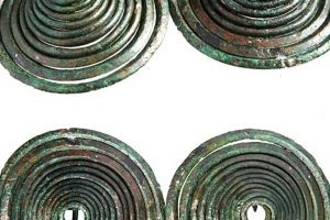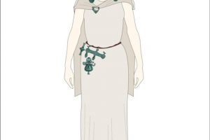 Предмети: Наочареста фибула од гроб 344, локалитет Лисичин Дол, с. Марвинци, Валандовско, 7-6 век пред н.е. претставени на реконструкција на девојка од локалитетот Лисичин Дол, с. Марвинци, Валандовско