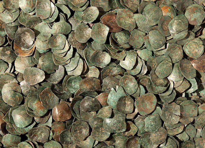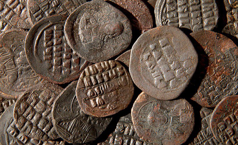 The weak monetarization of the Balkans lasted until the time of Basil II, who succeeded in re-imposing control by Byzantium over the peninsula and through inflationary bronze emissions increased monetary circulation, which experienced its culmination during the Comnenus dynasty. The anonymous folles, minted between 976 and 1092, were propaganda coins with a political background, and their main purpose was to impose Byzantine monetary policy in the territories that did not completely accept Byzantine central authority. These modified coins have Christian messages on the obverse and reverse sides; they do not show any state insignia or symbols. In addition to the bronze coins, in the period between the VII and XI centuries, there was a significant presence of gold (solidi and histamena) and silver coins (miliaresia), which are mostly found in hoards.