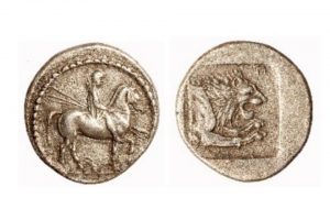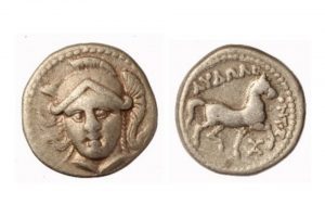 После 100 години, парите се појавиле и кај нас во Македонија, а во тој период тука живееле повеќе локални племиња, меѓу кои и Пајонците. На почетокот нивните монети биле ковани само од сребро (и од повеќе пајонски племиња и заедници). На парите биле претставени сцени на животни како на пример говедо, јарец, бик, коњ, потоа квадрат, кантарос (чаша за вино), боговите Аполон, Атена, Дионис, Ѕевс, јунакот Херакле и друго.