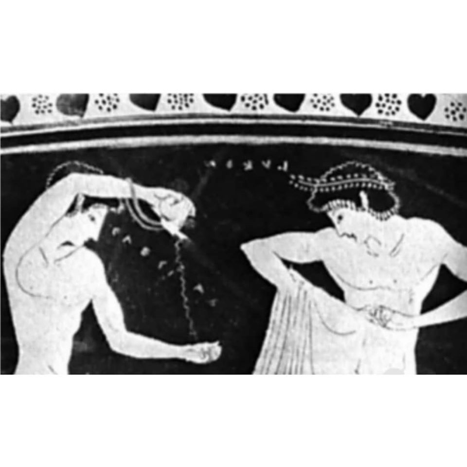 Денес преку проектот #МузејскаЕдукација преку #Цртежи 🎨 Ви го претставуваме Коринтскиот арибалос (сатче) датиран од 650-500 г.пр.н.е. кое го користеле атлетите пред натпреварите.