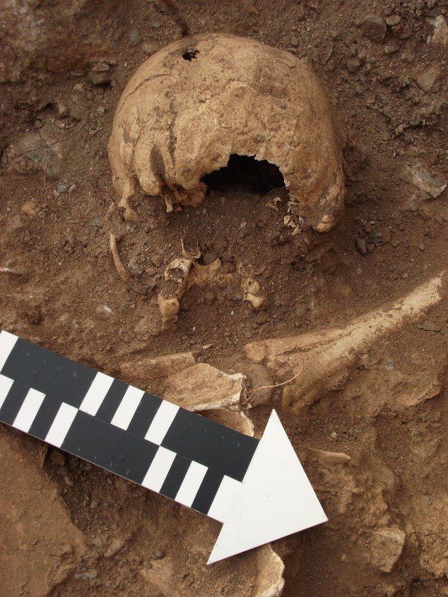 Помеѓу коските беа откриени и два човечки черепи со јасно воочливи трагови од смртоносни удари со тврд предмет.