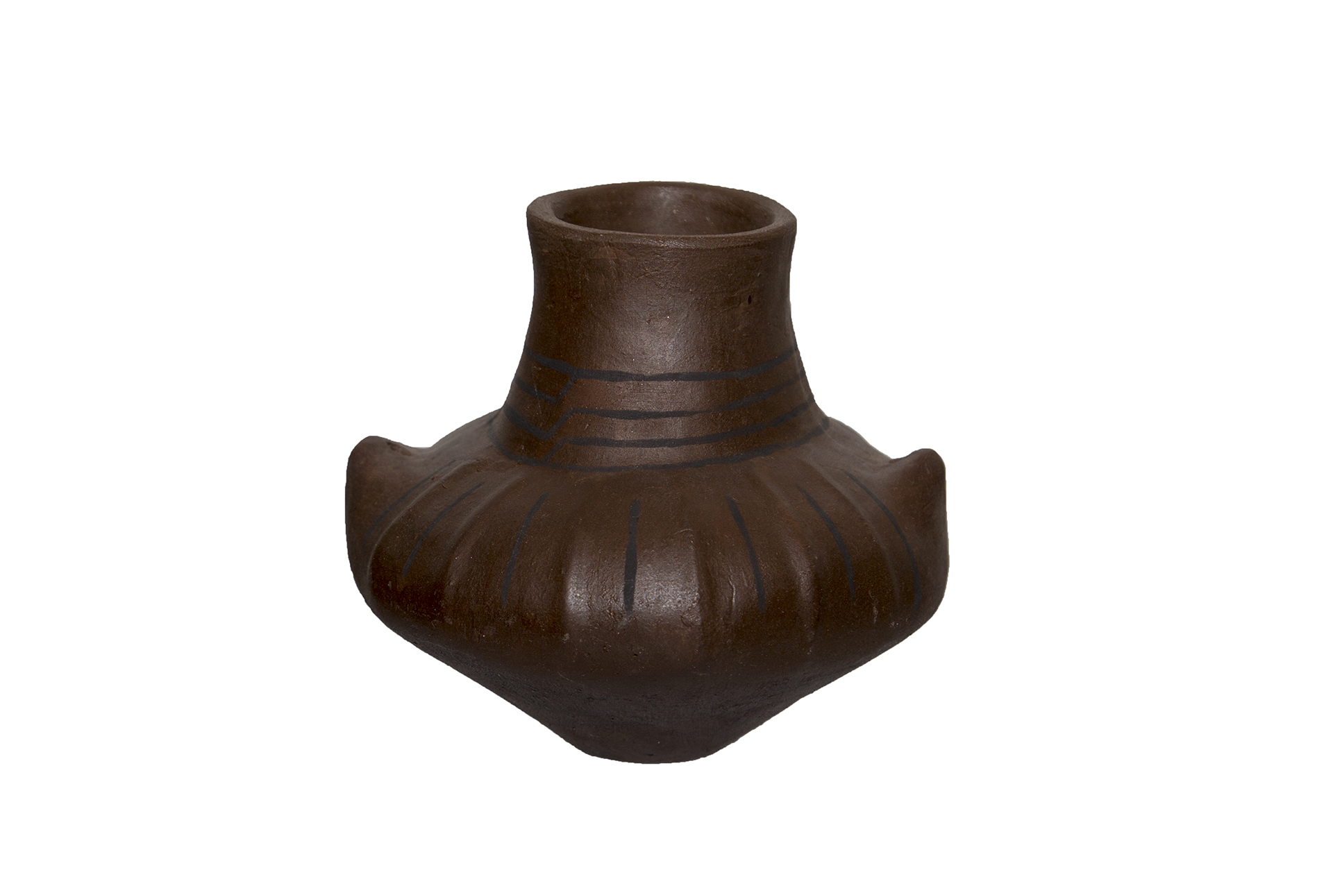 Керамичен сад со мало рамно дно, силно нагласен стомак и цилиндричен врат. Стомакот на садот е декориран со релјефно нагласени вертикални канелури. Поголемиот дел од површината е насликан со линеарни мотиви изведени во графитна техника.