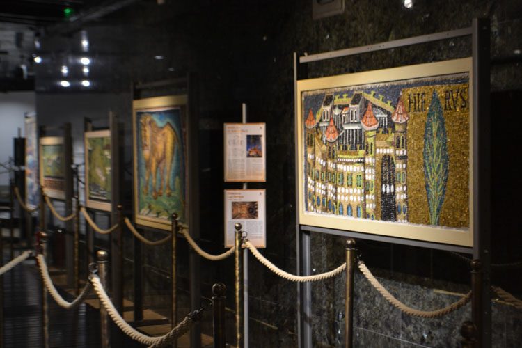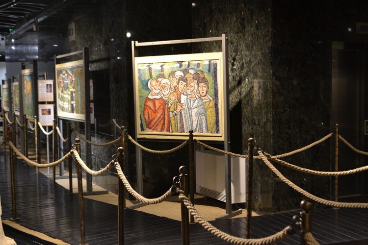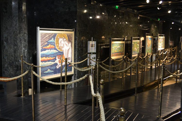 Мозаиците од оваа изложба се копии на оригинали од Мавзолејот на Гала Плачидија, базиликите Св. Витале, Св. Аполинариј од Класе и Нов Св. Аполинариј, крстилницата на Неон и Архиепископската капела. Изложбата нуди единствена можност да им се восхитуваме на детаљите од близу, со видливост која не би била достапна за голо око доколку би се гледале оригиналите во живо.