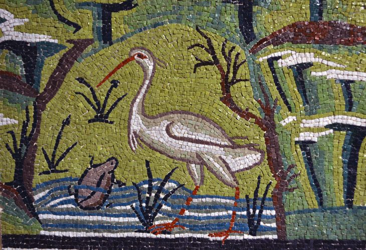 Равена е чувар на најбогатото светско наследство на антички мозаици од V и VI век, поголемо – според уметничката вредност и иконографската важност – дури и од вкупното наследство на мозаици на сите градови на античкиот и класичниот свет, како на исток, така и на запад. Мозаикот како уметничко изразување својот највисок стадиум го достигнал токму во Равена. Во мозаиците од Равена се родила христијанската иконографија – испреплетеност на реализам и симболизам, на римски и византиски влијанија, појдовна точка во историјата на уметноста.